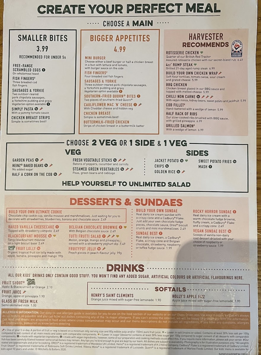 What sets this Harvester apart from other locations is its dedication to using fresh, quality ingredients in every dish, ensuring consistency across their offerings. Whether you’re a regular or a first-time visitor, the Harvester Winding Wheel Castleford menu delivers on both taste and value.